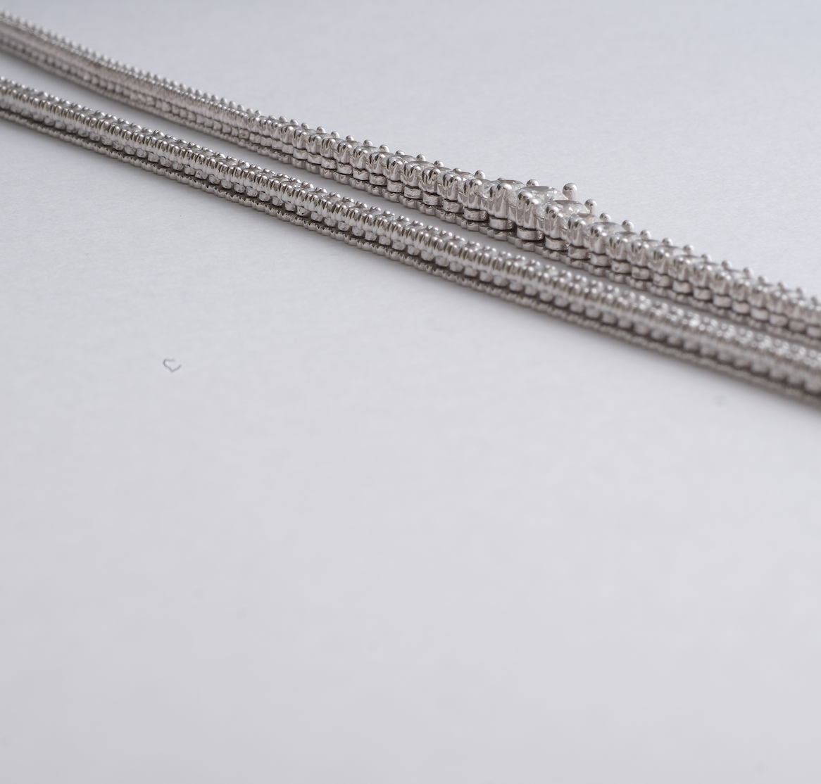 Our 14k white gold pieces are finished with rhodium plating. Most importantly, all gold used in our pieces is recycled, supporting our brand's sustainability values.